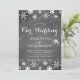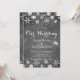Modelo de convite para na moda de casamento no inverno russo elegante em quadro de cinza escuro com bordas brancas de flocos de neve e letra branca de script. Preencha suas informações nos pontos, Você pode optar por personalizá-las alterando as fontes e as cores do texto. — O convite é adequado para casamentos elegantes com rusticidade de inverno. — Se precisar de assistência, por favor, entre em contato comigo!