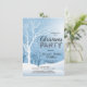 Convites modernos personalizados da festa de Natal do país das maravilhas do inverno nas cores brancas & azuis. Fundo em luzes e em neve da cintilação, flocos de neve e ramo de árvore. Modelo editável - adicione simplesmente seu texto. Todo o texto pode ser pia batismal mudada, cor e tamanho. Aperfeiçoe para o partido home, o partido de escritório, a festança do partido de comensal do feriado ou a toda a outra ocasião da estação do inverno.