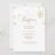 Com delicados flocos de neve dourados caindo sobre o seu nome personalizado, data especial e detalhes do evento de batismo ou batizado. Desenhado por Thisisnotme©