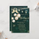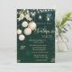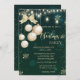 Bolas de Natal elegantes, floco de neve, arco e luzes de cordas em fundo verde. Estes belos convites de Natal são perfeitos para convites de festas de janto de Natal, convites para troca de presentes de Natal, angariadores de fundos de Natal, convites para bolas de férias e outros eventos realizados durante o mês de dezembro. Use apenas os campos modelo para adicionar suas próprias informações de evento.