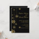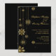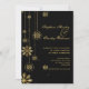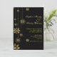 Convite de casamento de inverno preto com flocos de neve dourados que apresenta flocos de neve pendurados dourados em fundo preto. Um design moderno e contemporâneo para o seu casamento de dezembro ou Natal. Este design de modelo retrô faz parte de um conjunto de casamento, é totalmente personalizável e pode ser personalizado.