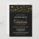 Um convite de festas de coquetel de Natal corporativo na moda negro, com flocos de neve de ouro, para convidar seus estimados colegas e convidados para comemorar a época festiva.