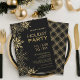 Flocos de neve Dourados e brilhantes contra fundo preto na frente encontra-se com xadrez de vidro com brilho dourado nas costas para um Natal festivo e elegante ou para uma festa de férias. Todo o texto é editável para atender às suas necessidades clicando em "personalizar este modelo". Confira o resto da coleção do EmmyINK para uma versão real de folha de ouro do mesmo convite, bem como para coordenar suprimentos de festas e decoração!