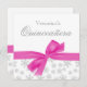Um convite com floco de neve na moda prateado Quinceanera apresentando uma ilustração de arco de fita rosa-quente. Perfeito para uma terra maravilhosa de inverno chamada Quinceanera festa de aniversário. Personalize facilmente com os detalhes da sua festa! As designs são ilustrações/gráficos impressos - NÃO É REAL.