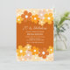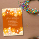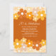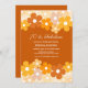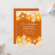 Linda flor em tons de laranja no convite de aniversário feminino de fundo castanho,