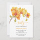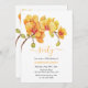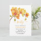 Orquídea amarela elegante em um convite de aniversário de pano de fundo branco. Fácil personalização para detalhes de nome, idade e evento para atender às suas necessidades.