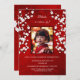 A cereja branca floresce e a foto da sua filha num fundo vermelho brilhante. Com um texto personalizado em uma fonte elegante para o festa de aniversario de meninas.