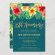 Celebre o 35º aniversário de casamento com estilo com este convite tropical moderno! Elegantes flores de hibisco em aquarela e folhas de palmeira em vermelhos, laranja e verde tropicais. Personalize facilmente para a sua festa usando os campos de modelo para adicionar suas informações.