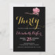 Convite Flor de bolinhas preto-ouro-aniversário de 30 anos