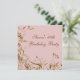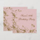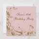 Convite de aniversário de sessenta anos de mulher com redemoinhos de borboleta de flor cor-de-rosa e dourada elegante.