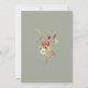 O moderno e romântico design de convite de casamento de flores silvestres BOHO foi pintado à mão em aquarela pela artista e designer licenciada internacionalmente, Audrey Jeanne Roberts. Flores silvestres secas e desbotadas de cor quente são arranjadas em uma moldura oval solta com arte linear e um par de borboletas delicadas e folhagens de folhas de Gingko. Esta versão tem uma frente branca leve e arejada com texto em verde sage médio e fundo no verso. Direitos autorais.