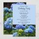 Este convite de festa de aniversário apresenta um fundo azul pastel e uma foto de flores de hortênsia azul Nikko. Compre este convite modelo para as suas necessidades de festa de aniversário. O modelo mostrado é para o aniversário de uma tia, no entanto, você pode editá-lo adicionando suas informações.