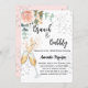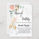 Um convite moderno, na moda e glamouroso para um Chá de panela de bolinho. Um fundo branco com bolhas, um par de flautas, óculos, uma flor de ouro rosa e um verde de eucalipto. O nome é escrito com um moderno estilo escrito à mão. Personalize e adicione os detalhes da sua festa.