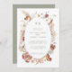 O moderno e romântico convite para o casamento de flores silvestres BOHO foi pintado à mão em aquarela por uma artista e designer internacionalmente licenciada, Audrey Jeanne Roberts. As flores silvestres, secas, aquecidas, são dispostas numa moldura oval solta, com uma arte de linhagem e um par de borboletas delicadas e verde-folha de Gingko. Esta versão tem uma frente branca clara e arejada com texto verde médio e fundo no verso. Direitos autorais.
