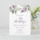 Lilases púrpuras de aquarela suave criam um convite para aniversário de 21 anos de primavera bonito. A caligrafia adiciona uma estética elegante. Este convite de aniversário está disponível tanto no estoque de papelão tradicional quanto em uma versão descarregável.