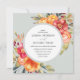 O elegante e rústico design apresenta uma coroa de lindas flores acrílicas pintadas em cor-de-rosa-pincel e amarelo, com pop de folhas e folhagem roxas e verdes coloridas. Placa inversa em uma cinza escura totalmente personalizável. Este convite é perfeito para um casamento elegante rústico, ou celebração de verão ou primavera