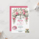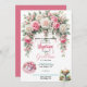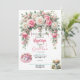 Um convite para o Batismo floral, elegante e cor-de-rosa, com uma letra, calçados de Batismo e um bolo de Batismo. Também os campos de texto modelo que permitem adicionar nomes de pais, cerimônia, recepção e rsvp.