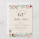 Convites de Aniversário de Adulto | Convites Elegantes Florais Bege Rústico 62º