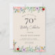 Convites de Aniversário de Adulto | Convite Elegante de 70 anos em Bege Rústico com Floral