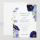 Convite de casamento rústico boho azul marinho com tipografia em folha dourada elegante e flores silvestres de verão. Adicione as iniciais do monograma da noiva e do noivo a esta bela obra de arte de flores de verão pintada à mão em aquarela, incluindo centáureas, papoulas, cosmos, miosótis e folhagens. Papelaria de casamento temática botânica com flores da primavera e do verão em azul empoeirado, azul rosado, azul marinho, roxo, verde e amarelo. Modelo fácil de usar e perfeito para um casamento único com tema de jardim de prado. Arte original única da artista Catherine Sweetman.