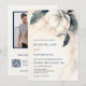 Este elegante convite de casamento mínimo apresenta IA criada em flor branca tridimensional com uma sombra sobre fundo brando. Com sua foto e um código qr digitalizável para seu site de casamento na parte de trás.