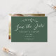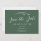 Este elegante casamento salva a data mostra um belo fundo verde, um girino de flor silvestre desenhado à mão, e uma tipografia elegante. Na parte de trás está sua foto em formato horizontal. A foto no verso é removível, se desejado. É uma design perfeita para um casamento rústico, mas elegante! Veja a coleção para mais itens!