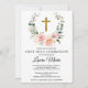 Convite Florais Cor de Água Rosa Primeira Comunhão Santa