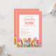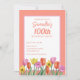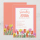 Beautiful watercolor illustration of orange, pink and yellow tulips on a white background for spring themed birthday party.