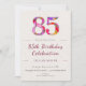 Celebrate an unforgettable milestone with this elegant 85th birthday invitation featuring a vibrant floral number “85” on a soft, modern paper style background. Front and back are included, and all text is fully customizable - perfect for a ladies birthday party, family gathering, or chic milestone celebration. Enjoy!
