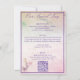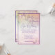 Este é um convite para o casamento com uma renderização do céu e das nuvens, fotografadas de cima das nuvens, mostradas em tons rosa. A arte floral é mostrada em pinks e pêssego com sotaques mauve. O inverso inclui um motivo 'Nosso dia especial', com espaço para seu Código QR RSVP, em conjunto com as cores de tinta complementares.