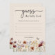 Floral Adivinha O Cartão De Comida Do Bebê. Procurando uma única vibração boêmica para impressionar seus amigos e família? Chic e na moda, esta bela paleta colorida de bronzeado, marrom, ferrugem, terracota, e laranja queimada é o tema de tendências para os chás de fraldas deste ano. A relva seca russa, as folhas e as flores silvestres vintage são detalhes espantosos a acrescentar ao seu chá de fraldas boho-chic moderno. Toda papelaria é projetada profissionalmente por Pinted Paperie.