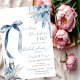 Este convite elegante apresenta um charmoso arco azul, gotas de brilho e flores azuis perfeitas para um chá de panela "algo azul". Esses convites de chá de panela são facilmente personalizados para o seu evento simplesmente adicionando seus detalhes.