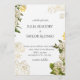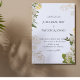 Um convite caloroso e gracioso com uma mistura de flores amarelas e brancas dispostas em uma composição suave e edificante.