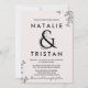 Este cartão de convite para casamento floral é perfeito para um casamento elegante. A design romântica apresenta um simples e decorado com flores, uma cobertura botânica e um sutil fundo de pincel. Para mais opções de texto de convite para o casamento, consulte a coleção completa de ampersas florais e de casamento: https://www.zazzle.com/collections/119954011382616320