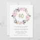 Este adorável e modesto convite de 40 anos apresenta uma coroa rosada e viscosa, cor-de-rosa, com peônias e rosas de cor-d'água, e folhas de cinzas escuras, sobre um fundo branco. A tipografia moderna do falso gold script diz "40", e o verso do convite é uma cor de pincel suave.