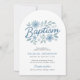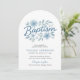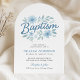 Celebrar um marco sagrado com este belamente desenhado convite de batismo arquivado para rapazes. Com flores de cor azul macia e um layout moderno e limpo, este cartão acrescenta um toque de eterno à cerimônia de batizar ou dedicação do seu filho. A forma arca arredondada cria uma apresentação única e elegante. Totalmente personalizável com seus detalhes de evento.