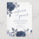 Convite Floral Azul Brilhante De Casamento De Verão Com RS