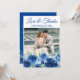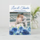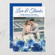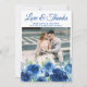 Cartões de agradecimentos de fotos casadas com design floral azul marinho, flores bonito com roteiro elegante. Personalize nomes, datas e informações.