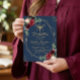 Convite Floral Azul do Marinho Dourado para graduação de F