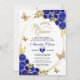 Convite Floral Azul Dourado Tiara Borboleta Mis Quinceañer