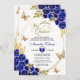 Floral Azul Dourado Tiara Borboleta Mis Quinceañera Convite