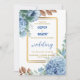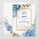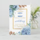 Convite Floral azul elegante com moldura dourada
