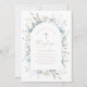 Uma maneira especial de comemorar sua ocasião mais sagrada. Este convite batismo apresenta um delicado arranjo botânico floral azul empoeirado, armando um arco com uma simples cruz de ouro. O roteiro de ouro elegante transmite todos os seus detalhes de evento. Certifique-se de que seu dia é tão perfeito quanto você, convidando família e amigos a celebrar com este simples convite elegante para o batismo! Entre em contato com o designer para produtos correspondentes. Copyright Susan Mingay Koehrn para Susan Mingay Designs, todos os direitos reservados.