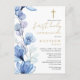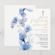 Este cartão-postal de convite floral transparente azul empoeirado para primeira comunhão pode ser personalizado com suas informações em tipografia sofisticada e seu monograma no verso. Criado por Thisisnotme©