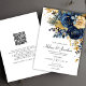 Crie o conjunto de casamento dos seus sonhos com este deslumbrante Convite de Casamento Floral Navy Azul Dourado Jardim Elegante. Com uma paleta de cores sofisticada de azul-marinho, dourado e terracota, este convite equilibra perfeitamente a elegância com um toque de charme rústico. A delicada caligrafia adiciona um toque pessoal e refinado, tornando-o ideal para casais que buscam um design atemporal. Com o código QR incluído, seus convidados podem acessar facilmente o site do seu casamento e responder, simplificando o processo para você e seus entes queridos. E com a opção de enviar digitalmente, você pode compartilhar facilmente este lindo convite com seus convidados, mesmo que você esteja com prazo apertado. Este convite combina perfeitamente com uma variedade de temas de casamento, desde modernos e inspirados em jardins até eventos boho e rústicos. Comece a personalizar e deixe que seus convidados experimentem a elegância do seu