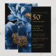Convite Floral Azul Moderno Preto E Dourado 50º Aniversári