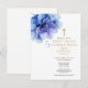 Este convite moderno e elegante para primeira comunhão em aquarela floral azul desbotado pode ser personalizado com suas informações em tipografia moderna preta e dourada. Criado por Thisisnotme©