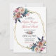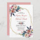Convite Floral Azul-Rosa Elegante | Casamento Dourado