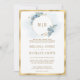 Convite Floral Azul Suave Dourado Tudo em Um Casamento