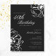 Convite Floral de aniversário de 40 anos branco e preto. Nosso design de convite apresenta um incrível motivo floral preto e branco, combinando simplicidade com sofisticação. Os delicados motivos florais contrastam lindamente com o fundo estaladiço, criando um olhar simples e elegante. Junte-se a nós para uma noite inesquecível onde todos os detalhes são trabalhados à perfeição, celebrando em estilo e graça.